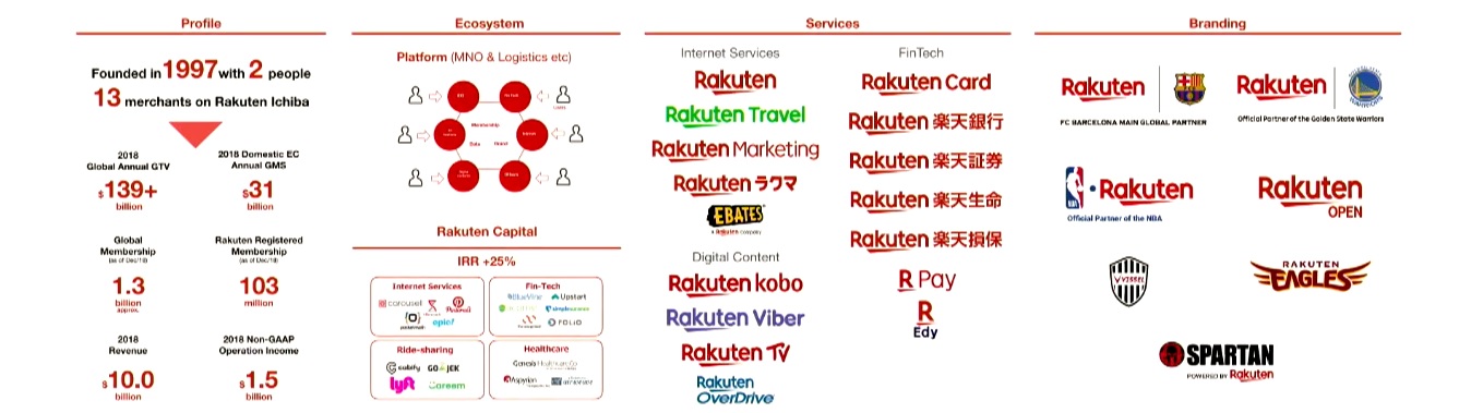 - Rakuten’s ecosystem of different brands / products / markets , as shown in the diagram below, provides a strength through loyalty and cross-selling. Whilst many telcos don’t natively have this same ecosystem under their own brand, there are partnership models